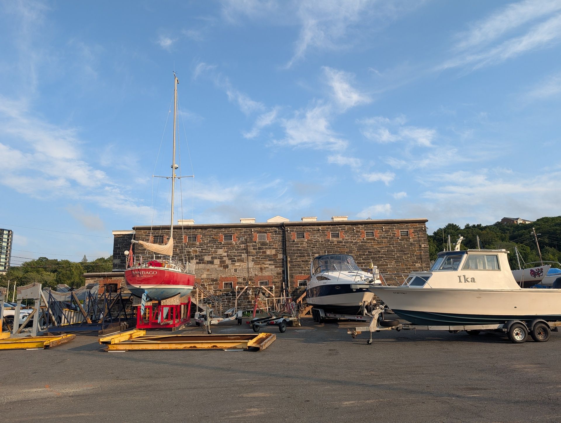 Armdale sits on surprisingly historic ground. The stone building near the docks once served as a British prison during the War of 1812, housing American POWs. Before that it held captured French from the Napoleonic War. Deadman’s Island lies just across the water, where many of those prisoners were buried. Each year, the U.S. military still sends a delegation to honor them. Today the prison is used as storage for slipholders, but walking inside, you can still feel that it was built for confinement.
